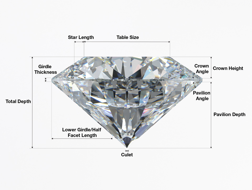 Fire, brilliancy and scintillation of a diamond are largely determined by the proportions of various parts of the diamond. Finish grade mainly evaluates the symmetry.
